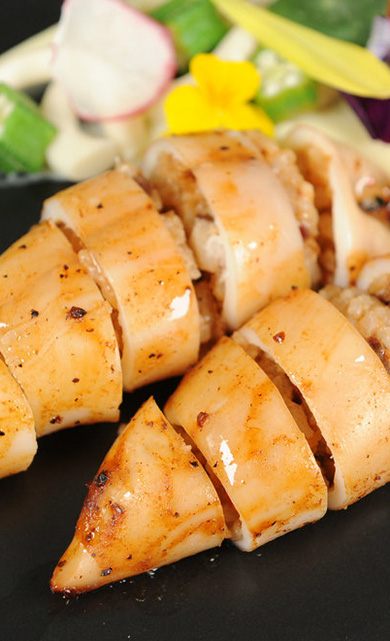 9. 將魷魚表面用黑椒醬涂抹均勻